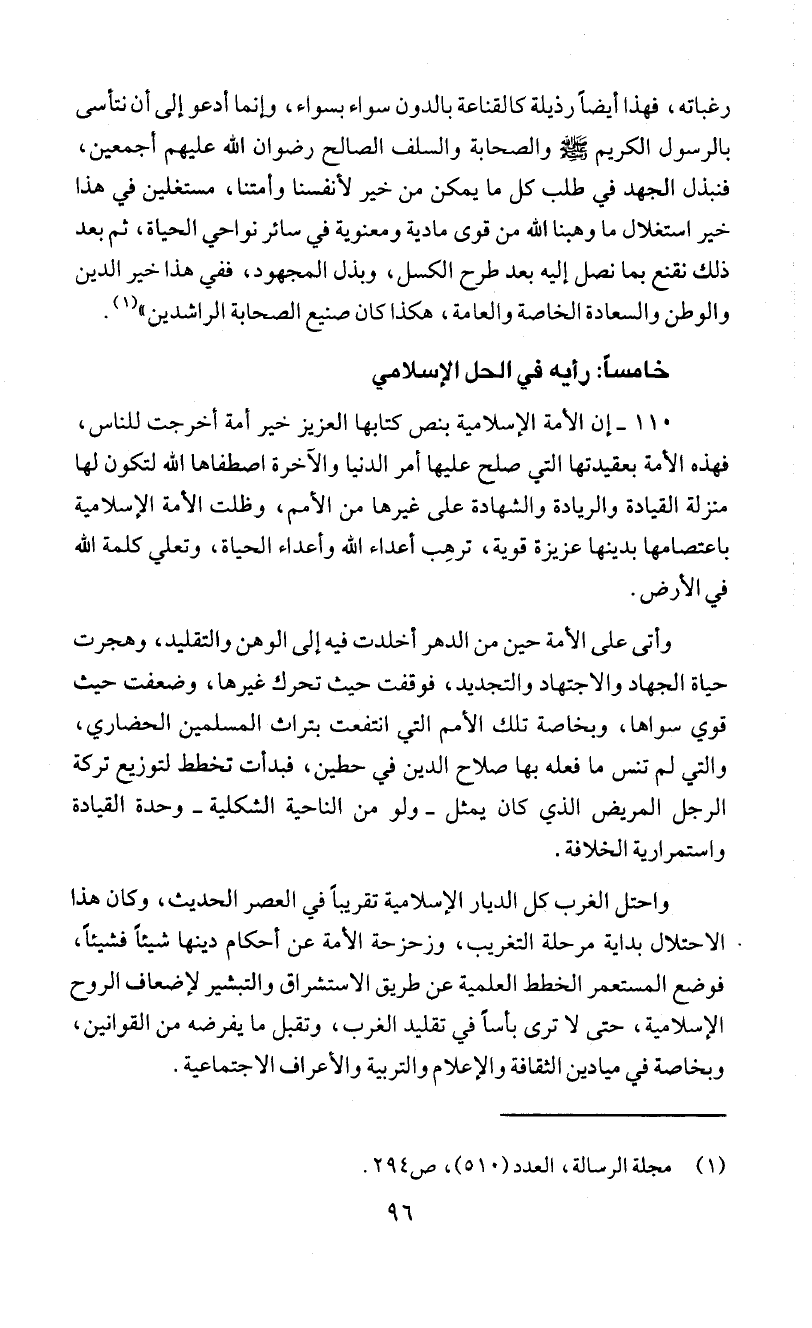 خامسأ: رأيه في الحل الإسلامي