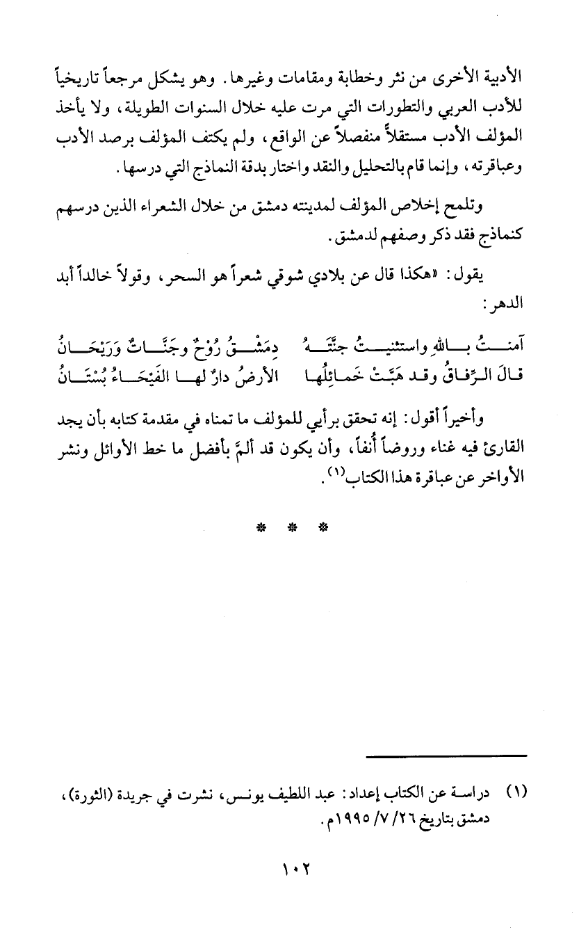 وتلمح إخلاص المؤلف لمدينته دمشق من خلال الشعراء الذين درسهم