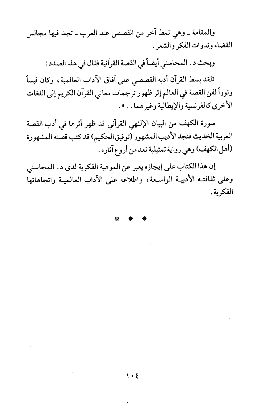 إن هذا الكتاب على إيجازه يعبر عن الموهبة الفكرية لدى د. المحاسني