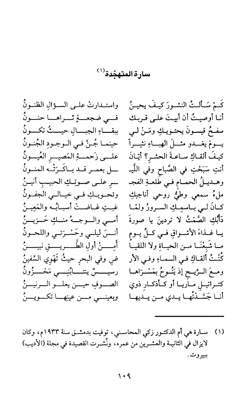 (1) سارة هي أم الدكتور زكي المحاسني، توفيت بدمشق سنة 933 ام، وكان