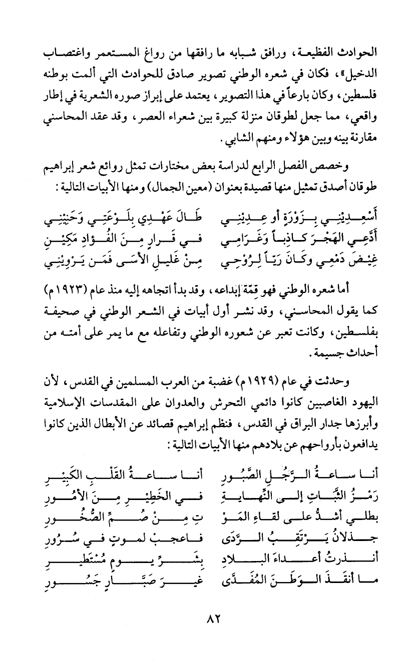 وأبرزها جدار البراق في القدس، فنظم إبراهيم قصائد عن الأبطال الذين كانوا