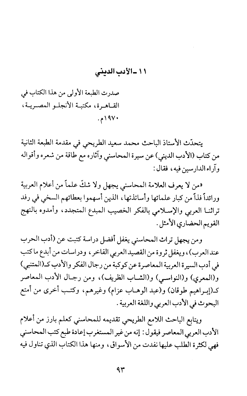 الأدب العربي المعاصر فيقول!: إنه من غير المستغرب إعادة طغ كتب ا لمحاسني