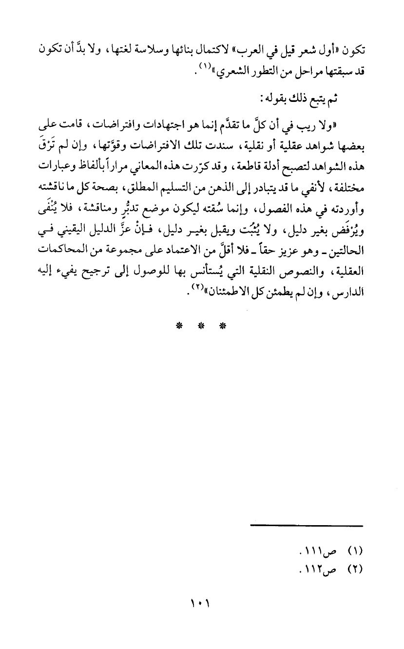 الدارس، وإن لم يطمئن كل الاطمئنان " (2).