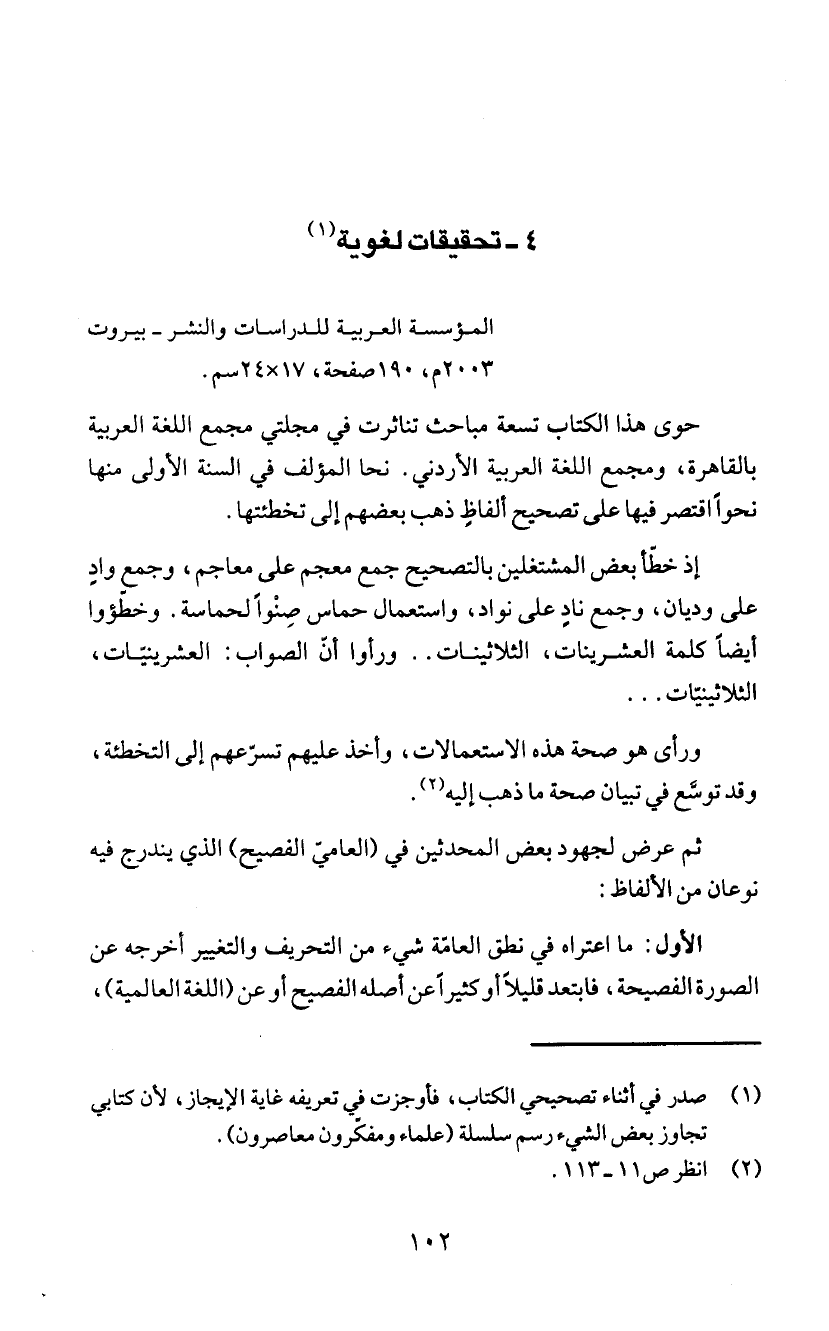 حوى هذا الكتاب تسعة مباحث تنإثرت في مجلتي مجمع اللغة العربية