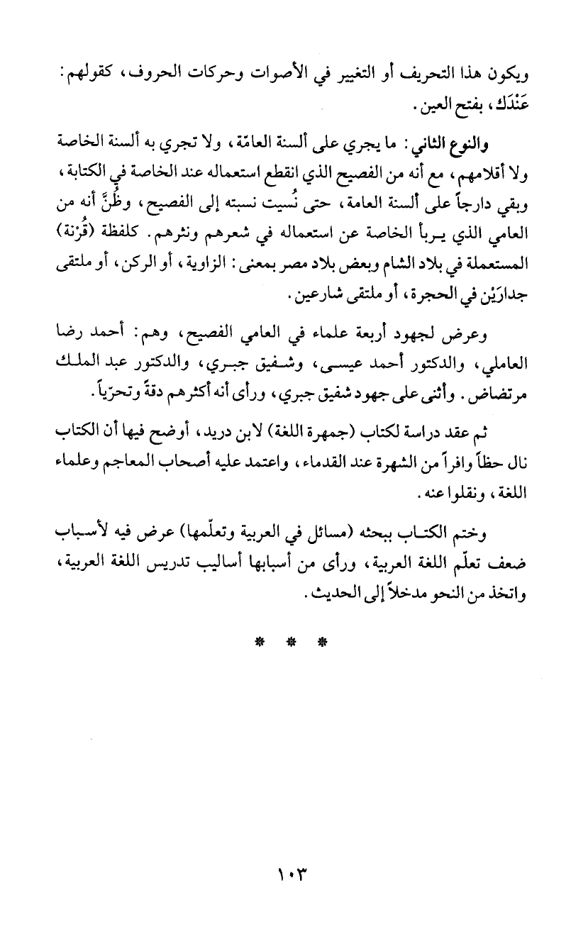 وختم الكتاب ببحثه (مسائل في العربية وتعفمها) عرض فيه لأهباب