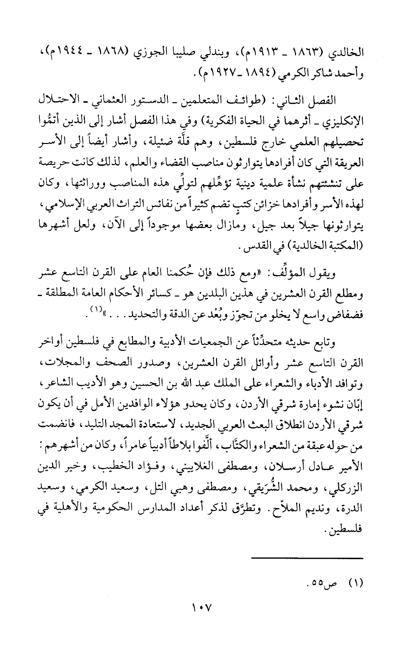 وتابع حديثه متحذَثاً عن الجمعيات الادبية والمطابع في فلسطين أواخر