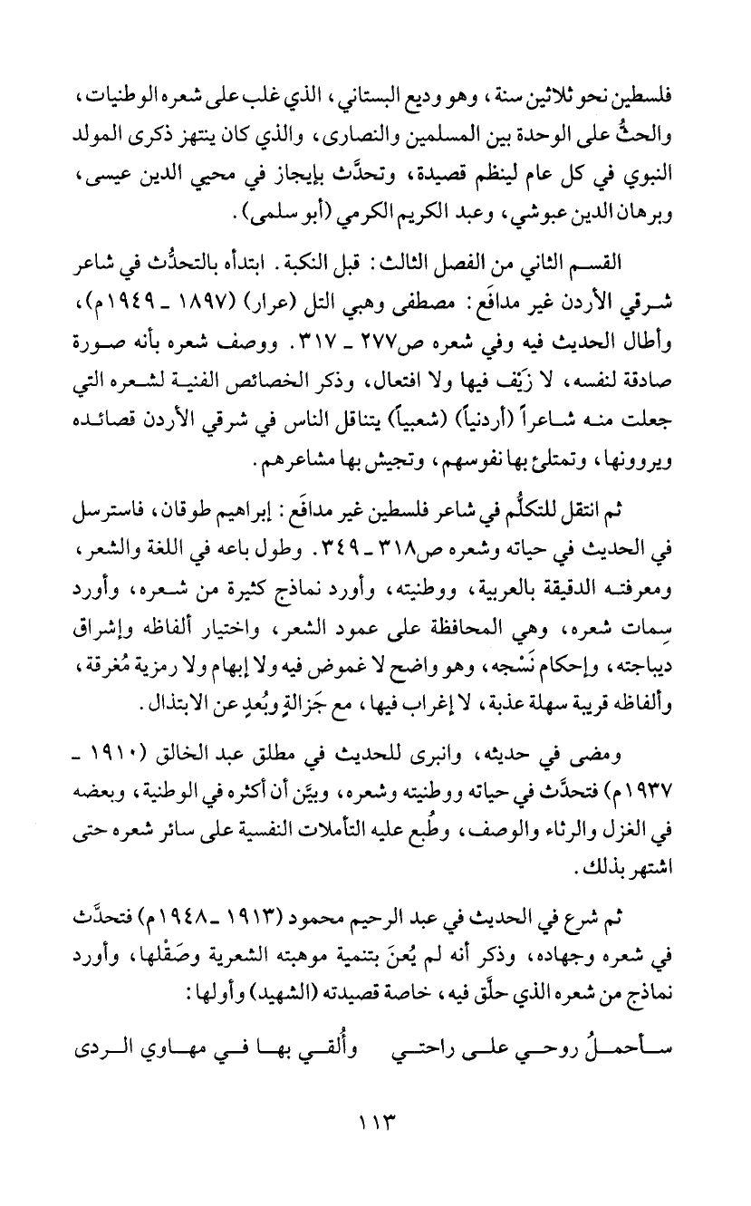 القسم الثاني من الفصل الثالث: قبل النكبة. ابتدأه بالتحدُث في شاعر