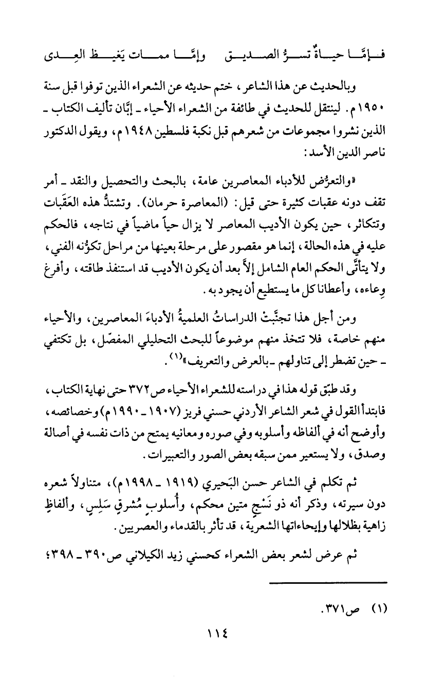 "والتعزُض للأدباء المعاصرين عامة، بالبحث والتحصيل والنقد - أمر