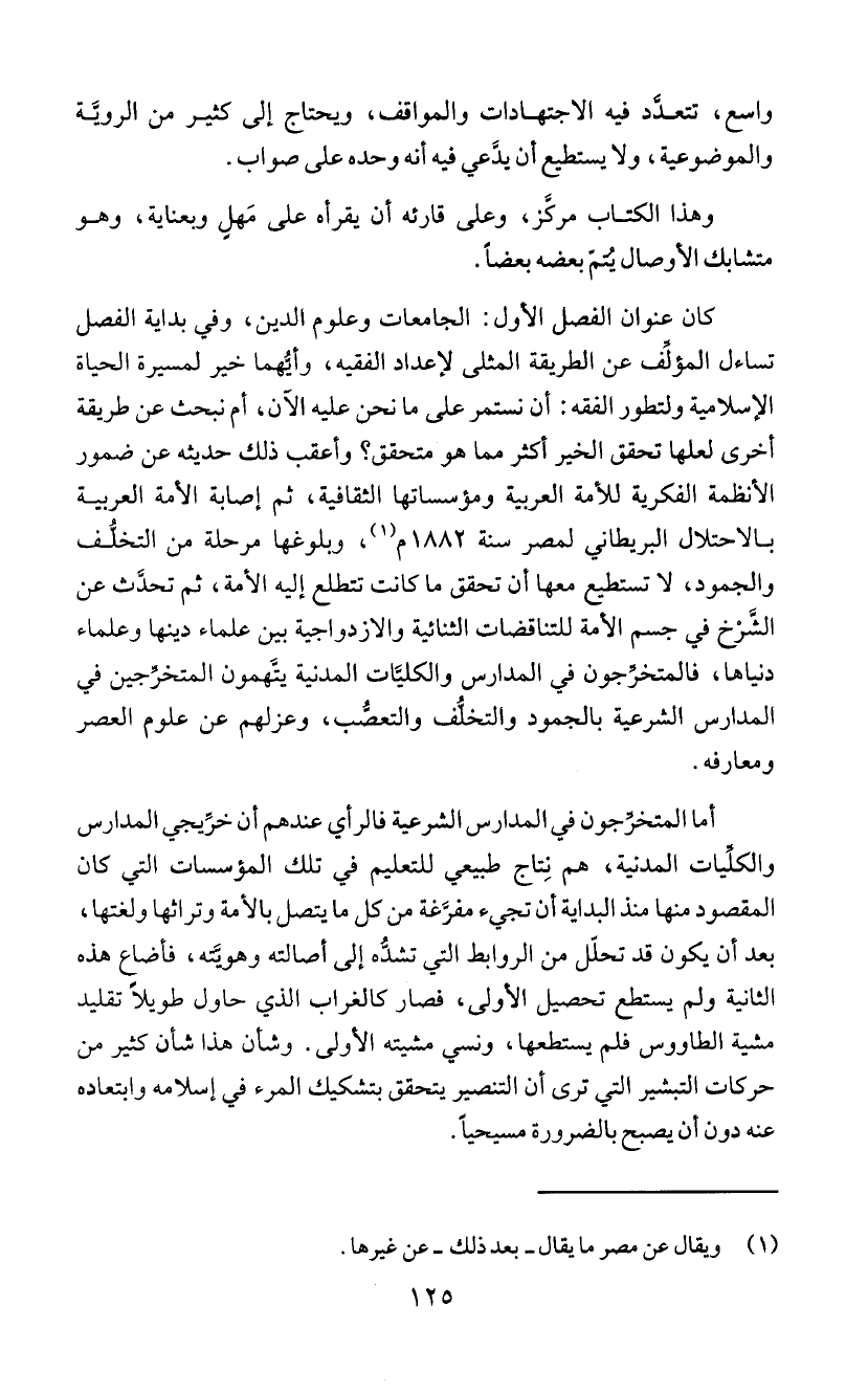 كان عنوان الفصل الأول: الجامعات وعلوم الدين، وفي بداية الفصل