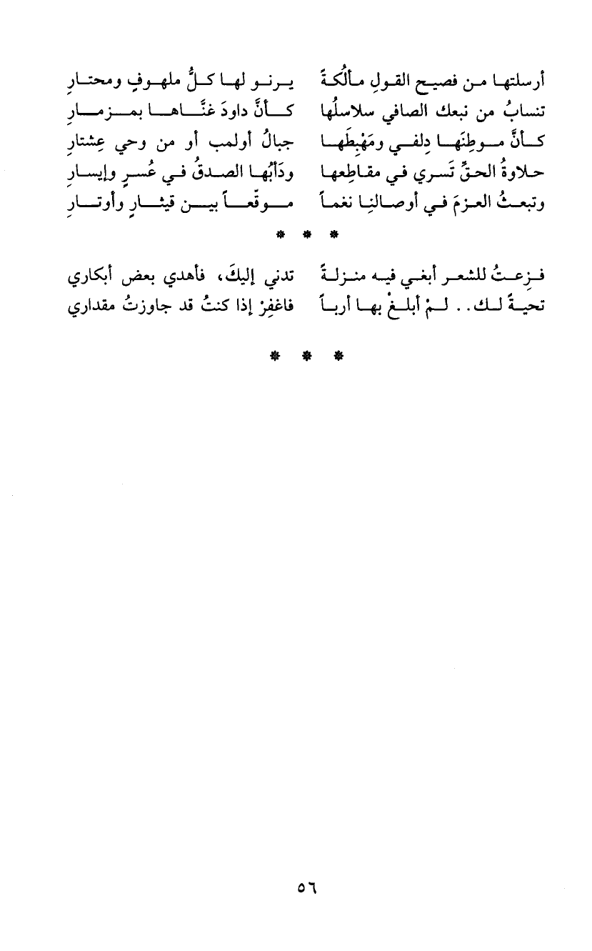 تنسابُ من نبعك الصافي سلاسلُها كأن داودَ غنَاها بمزمارِ