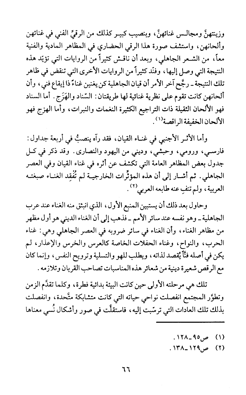 الجاهلي. ثم أشار إلى ان هذه المؤثَّرات الخارجية لم تُفْقِد الغناء صبغته