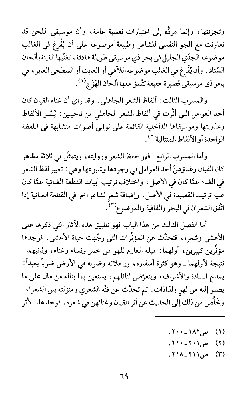 والمسرب الثالث: ألفاظ الشعر الجاهلي. وقد رأى أن غناء القيان كان