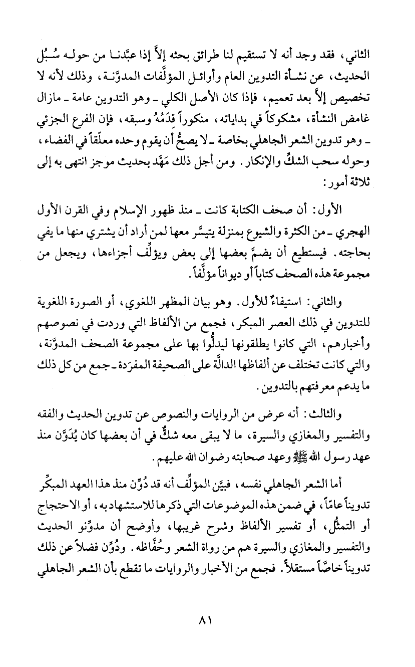تدويناً خاضَاً مستقلأً. فجمع من الأخبار والروايات ما تقطع بأن الشعر الجاهلي