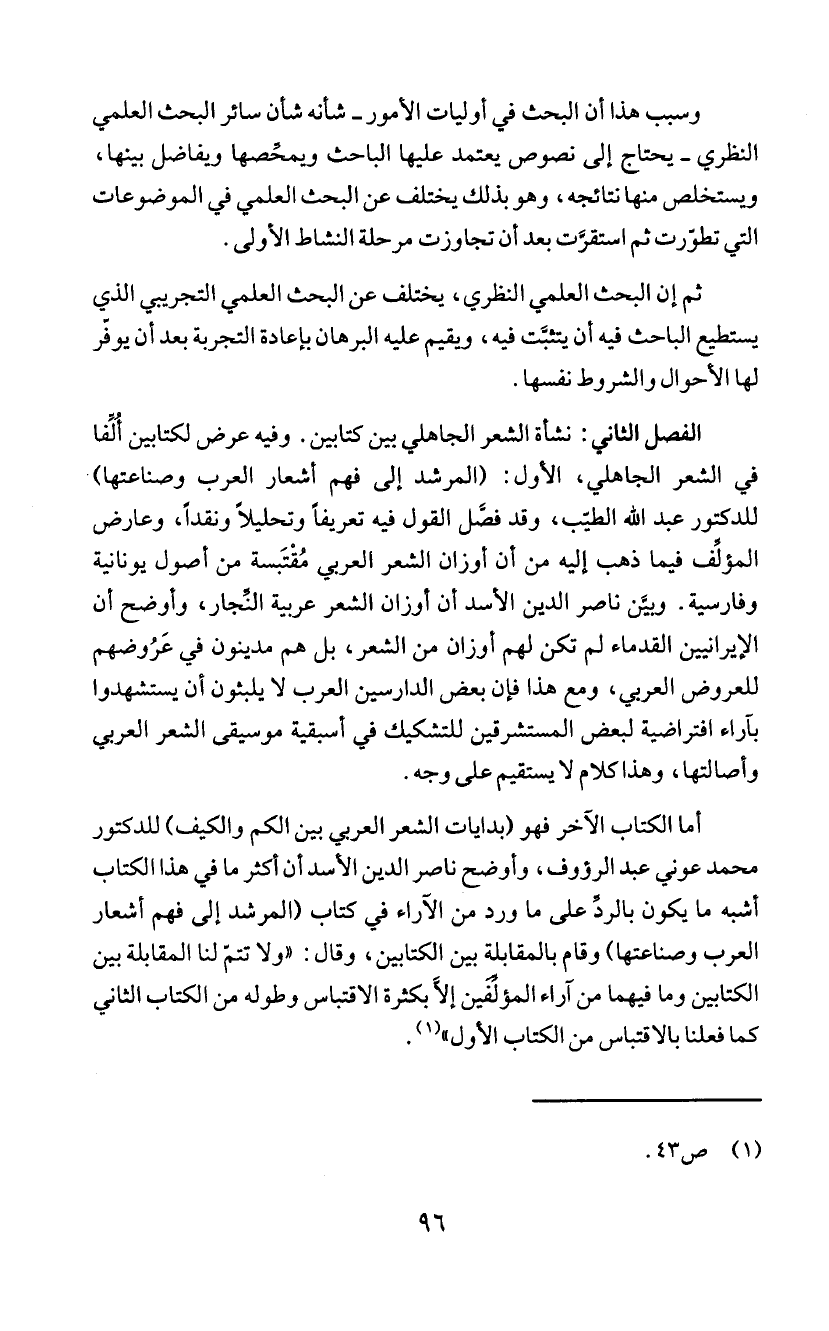 ثم إن البحث العلمي النظري، يختلف عن البحث العلمي التجريبي الذي