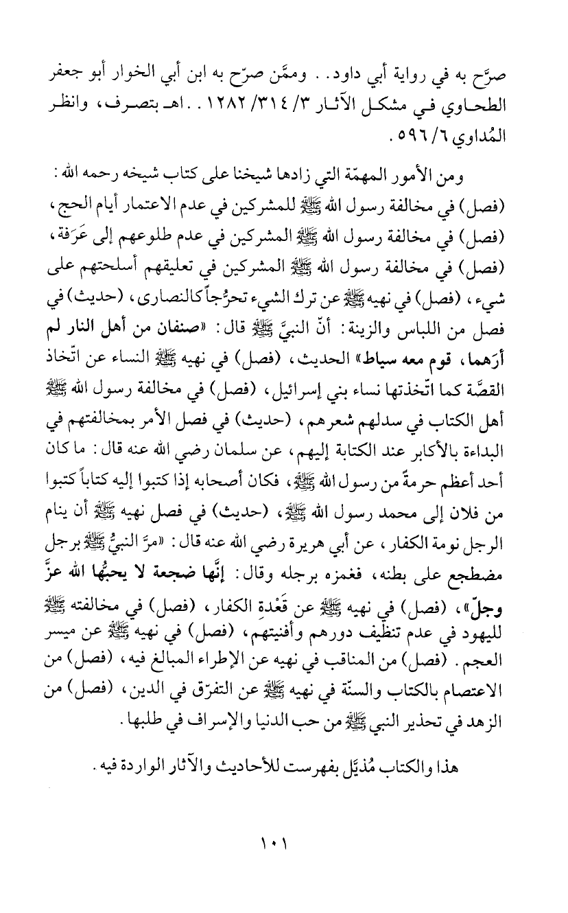 هذا والكتاب مُذيَّل بفهرست للأحاديث والاثار الواردة فيه.