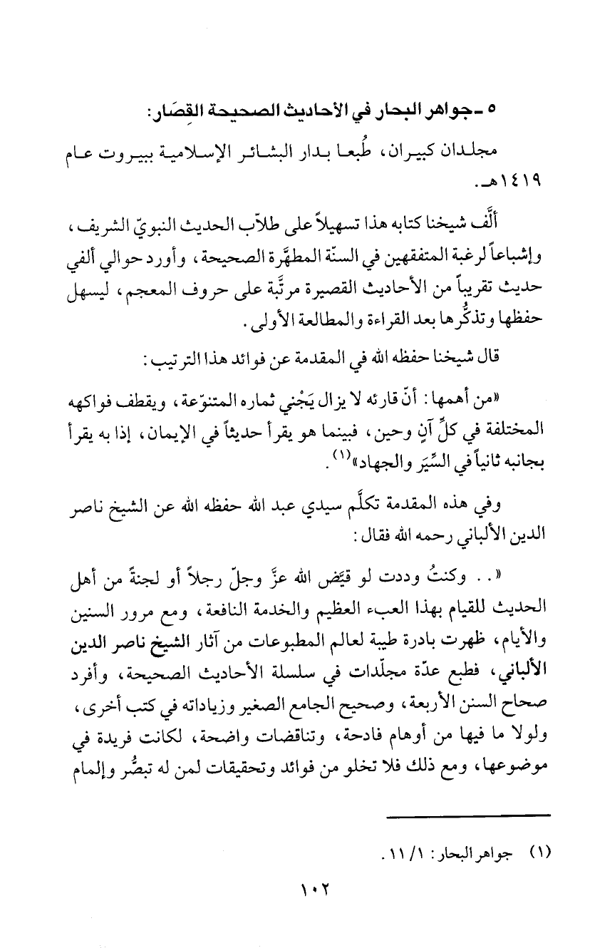 5 - جواهر البحار في الأحاديث الصحيحة القِصَار: