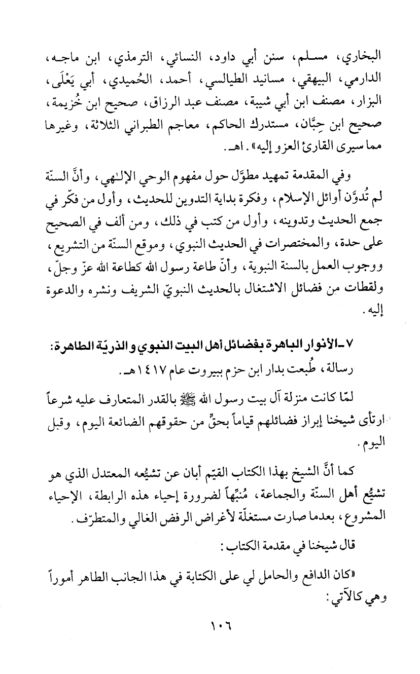 7 - الأنوار الباهرة بفضائل أهل ا لبيت النبوي والذرية الطاهرة: