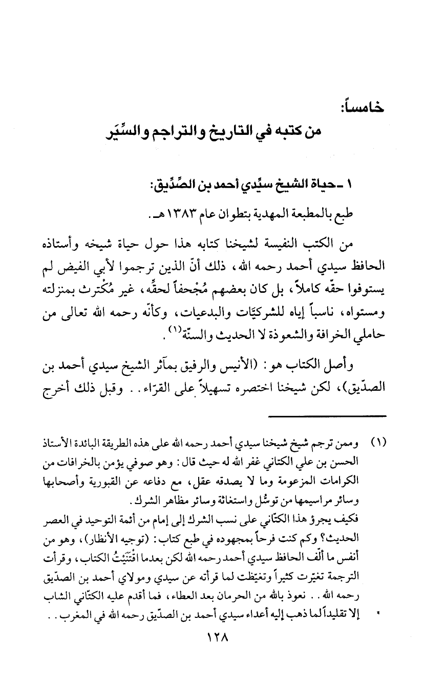 إلا تقليداً لما ذهب إليه أعداء سيدي أحمد بن الصدّيق رحمه الله في المغرب. .