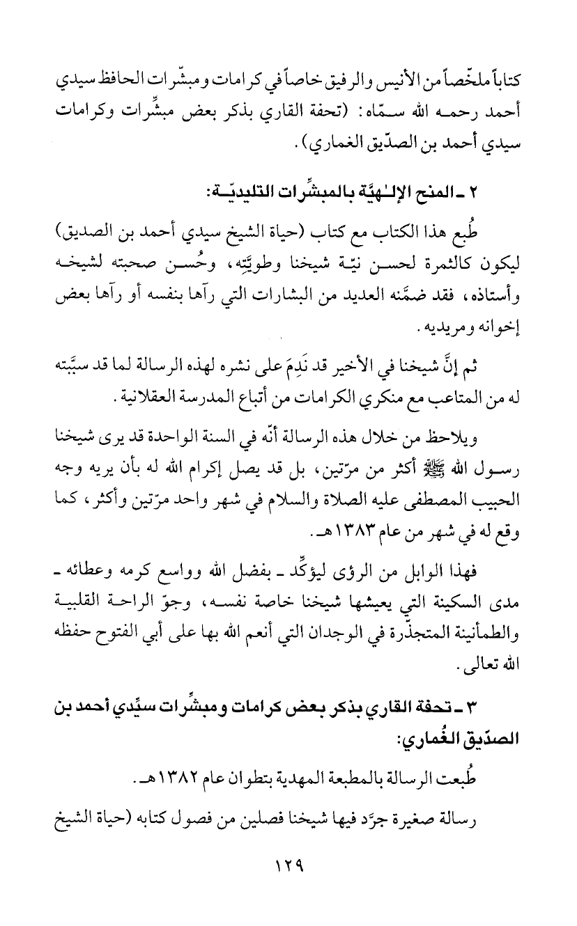 أحمد رحمه اللّه سمّاه: (تحفة القاري بذكر بعض مبشِّرات وكرامات