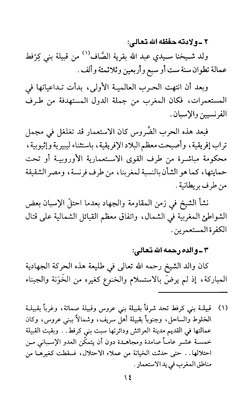 ولد شيخنا سيدي عبد اللّه بقرية الصَّاف (1) من قبيلة بني كِرْفط