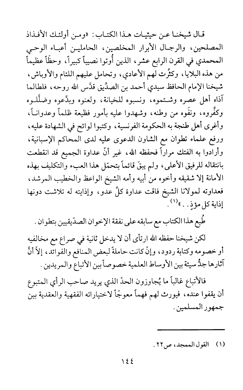 طُبع هذا الكتاب مع سابقه على نفقة ا لإخوان الصدّيقيين بتطوان.