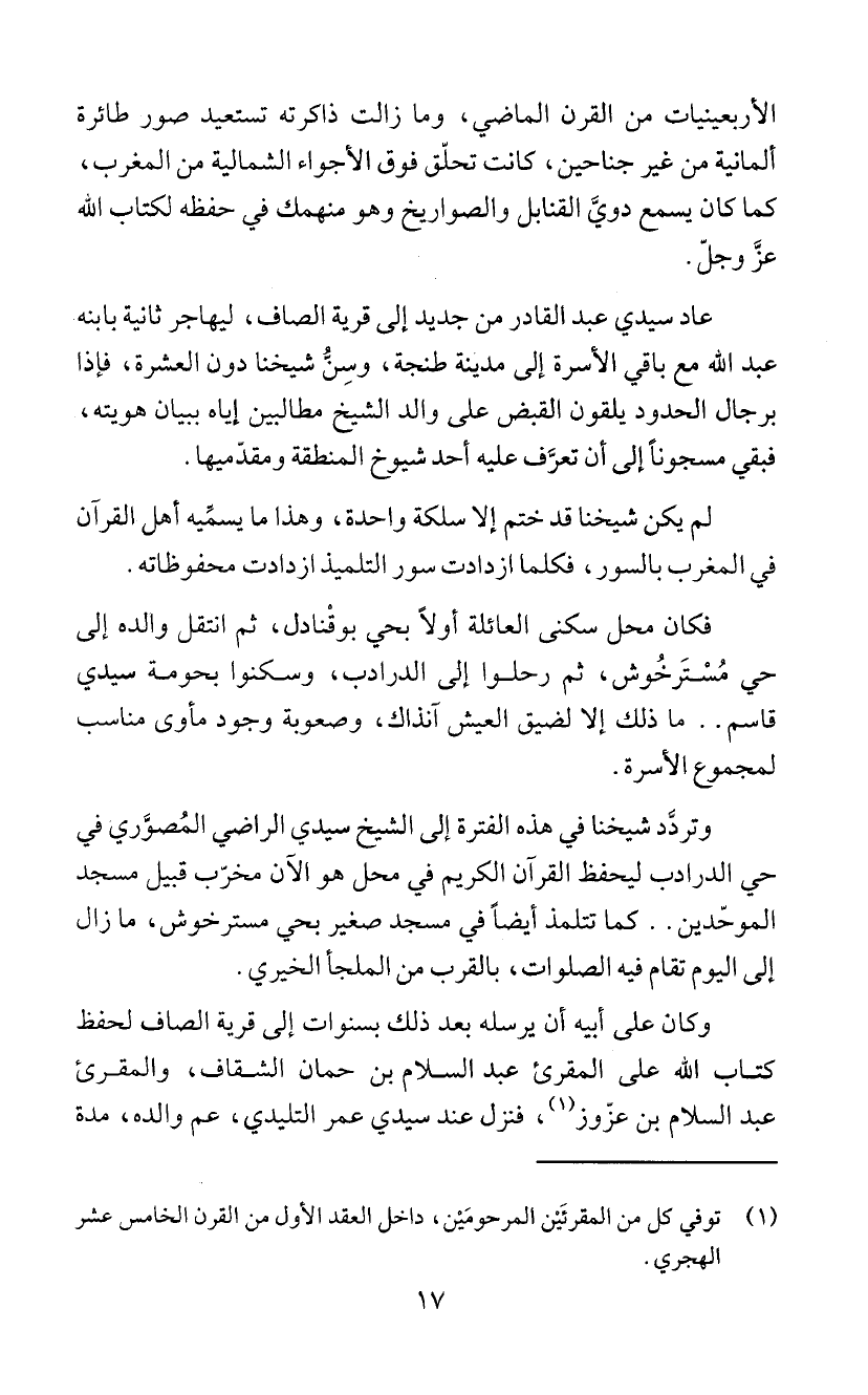 عبد السلام بن عزّوز (1)، فنزل عند سيدي عمر التليدي، عم والده، مدة
