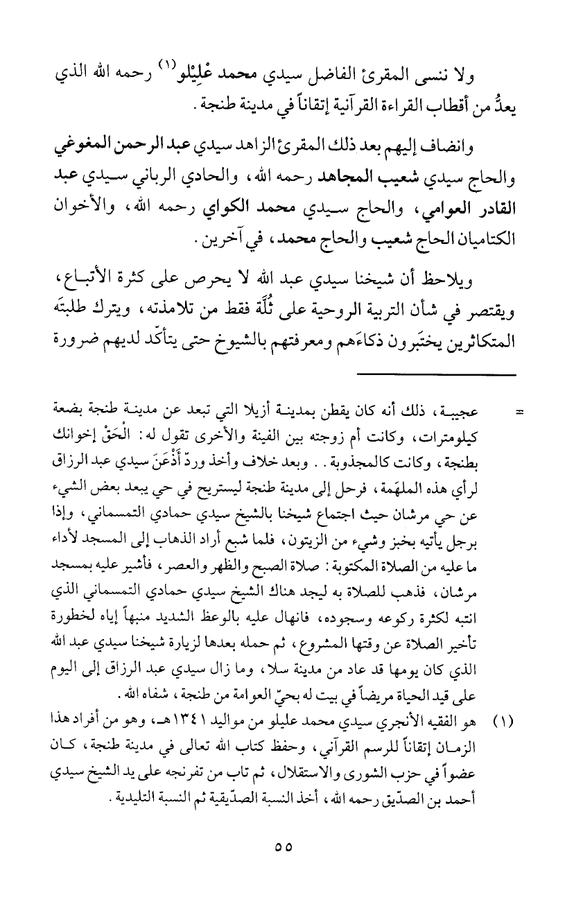 ولا ننسى المقرئ الفاضل سيدي محمد عْلِيْلو (1) رحمه الله الذي