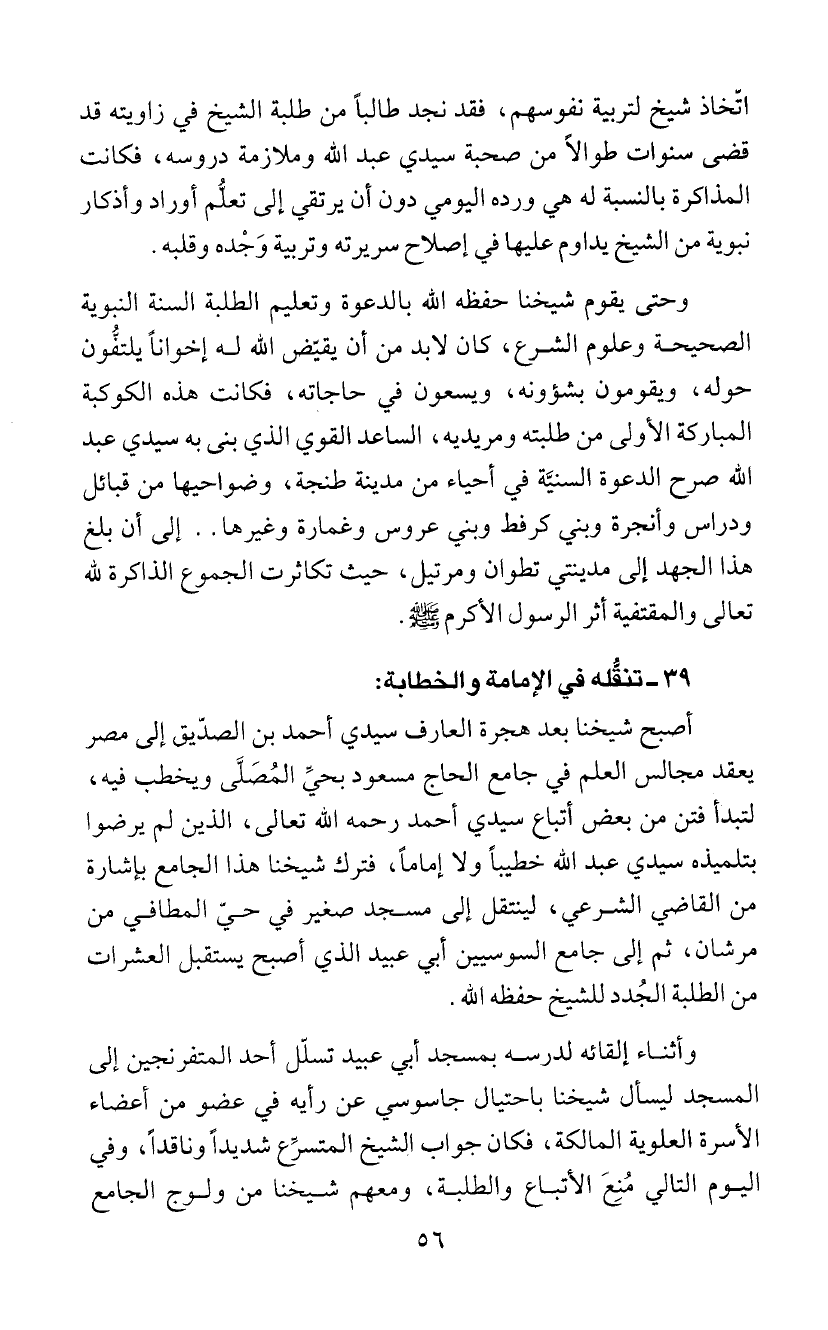 أصبح شيخنا بعد هجرة العارف سيدي أحمد بن الصذيق إلى مصر