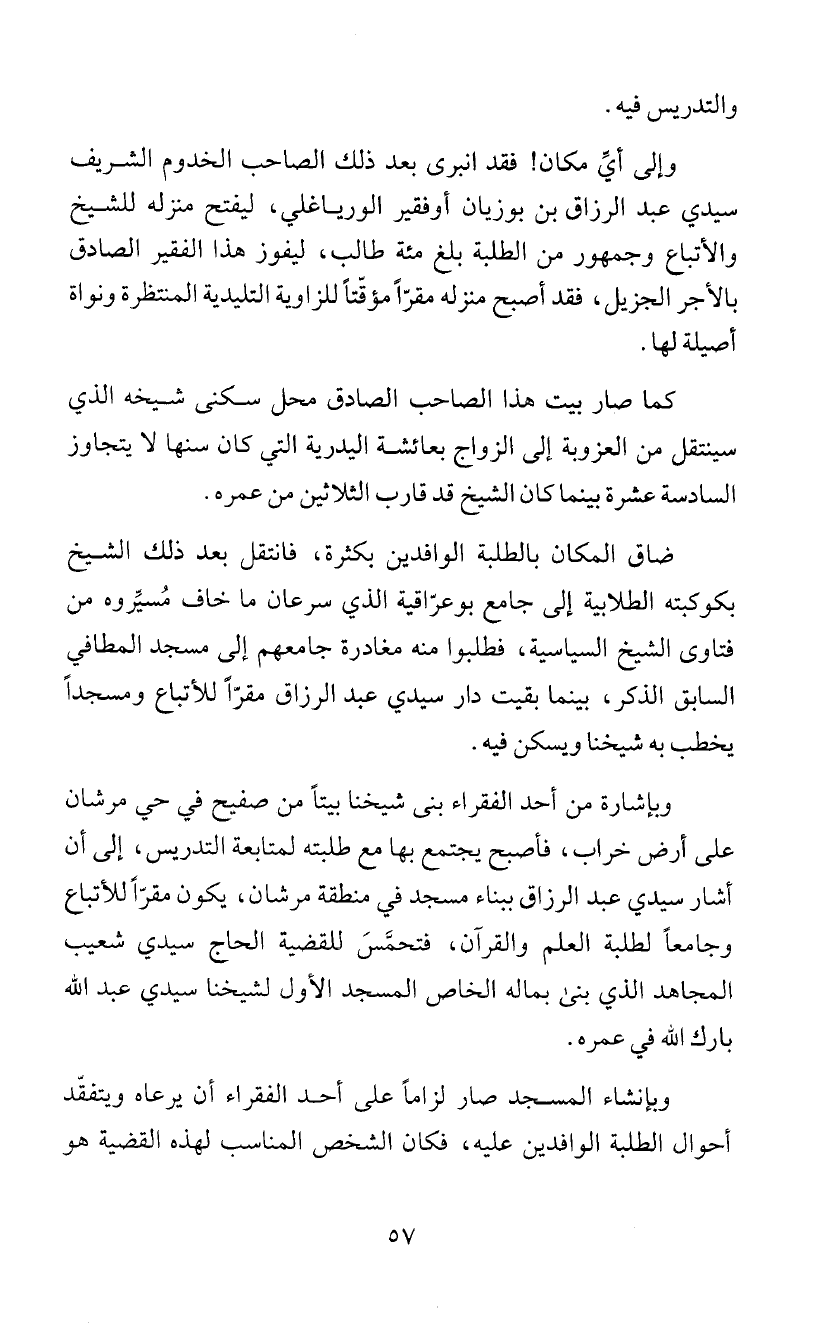 سيدي عبد الرزاق بن بوزيان أوفقير الورياغلي، ليفتح منزله للشيخ