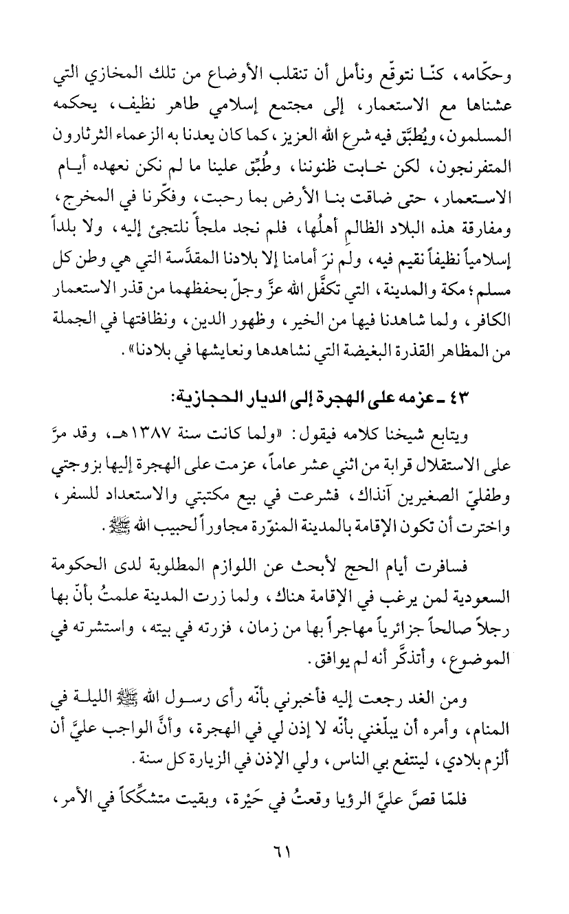43 - عزمه على الهجرة الى الديار الحجازية:
