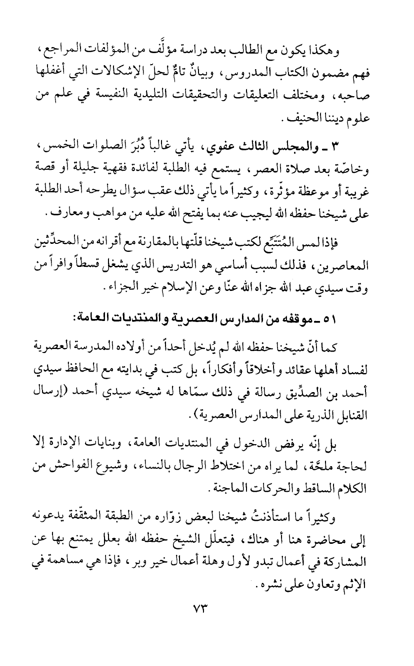 1 5 - موقفه من المدارس العصرية والمنتديات ا لعامة: