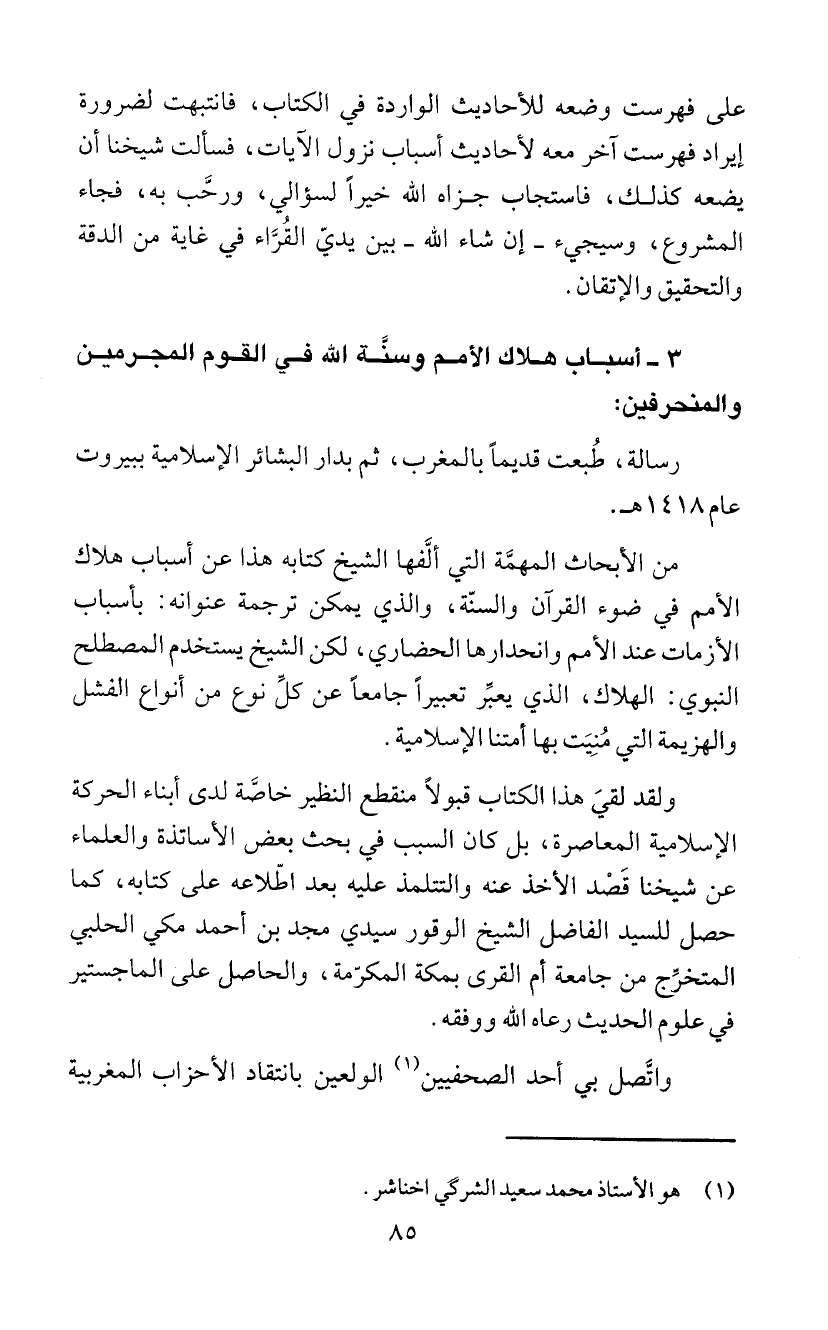 الأمم في ضوء القرآن والسنّة، والذي يمكن ترجمة عنوانه: بأسباب