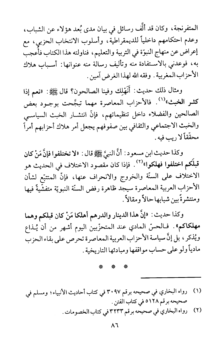 الأحزاب العربية المعاصرة سيجد ظاهرة رفض السنّة النبوئة متفشّيةً فيها