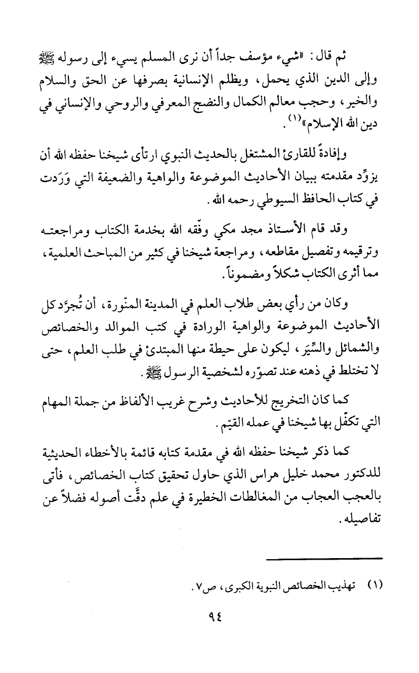(1) تهذيب الخصائص النبوية الكبرى، ص 7.