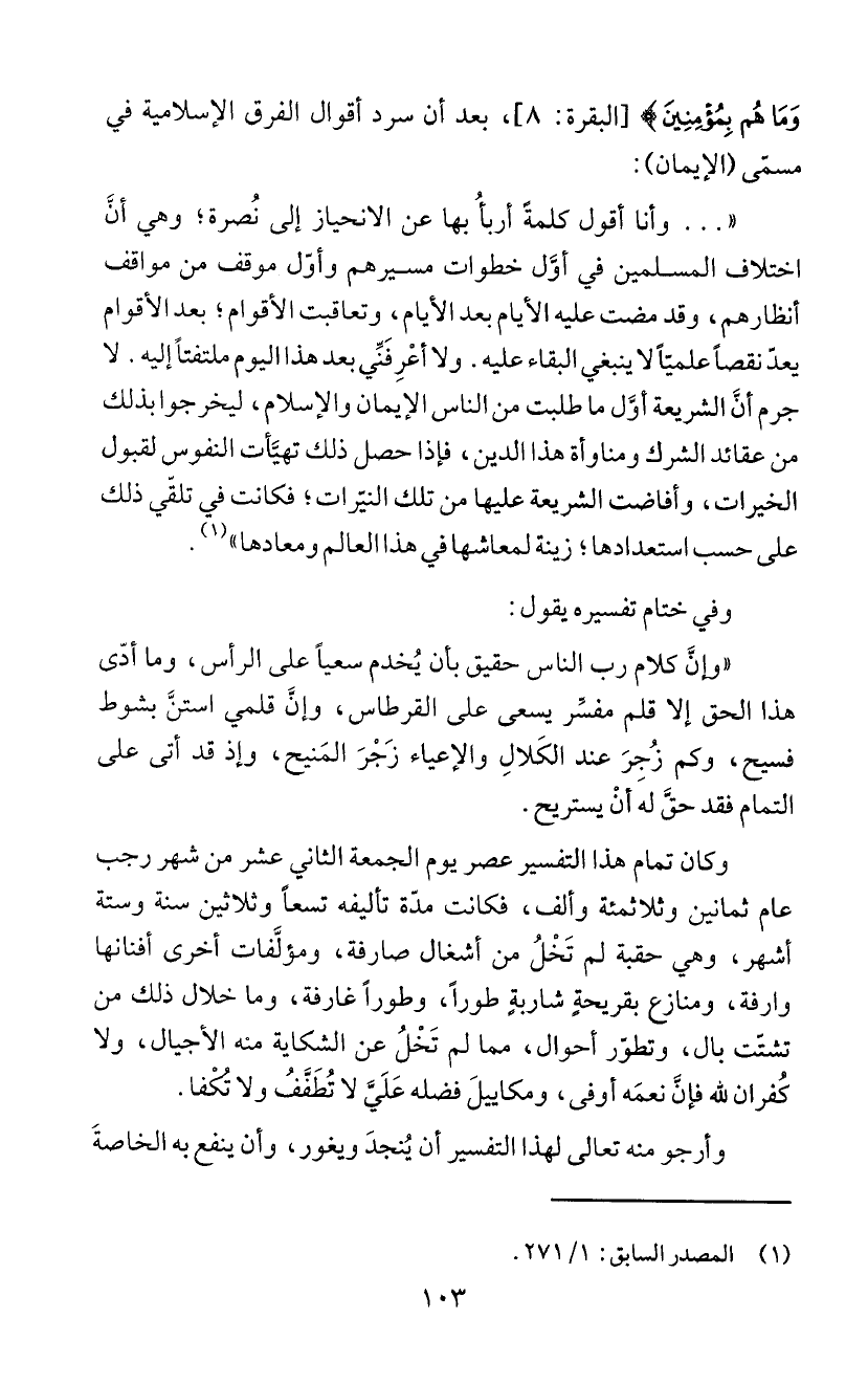 وَمَا هُم بِمُؤمِنِينَ " 1 البفرة: 8)، بعد أن سرد اقوالط الفرق الإسلامية في