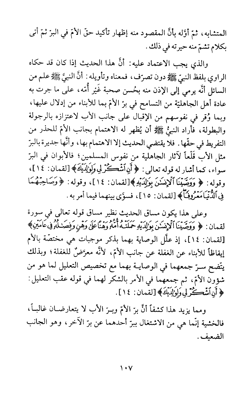 المتشابه، ثئم أؤَله بأنَ المقصود منه إظهار تأكيد حقّ الأمّ في البرّ ثمّ أتى