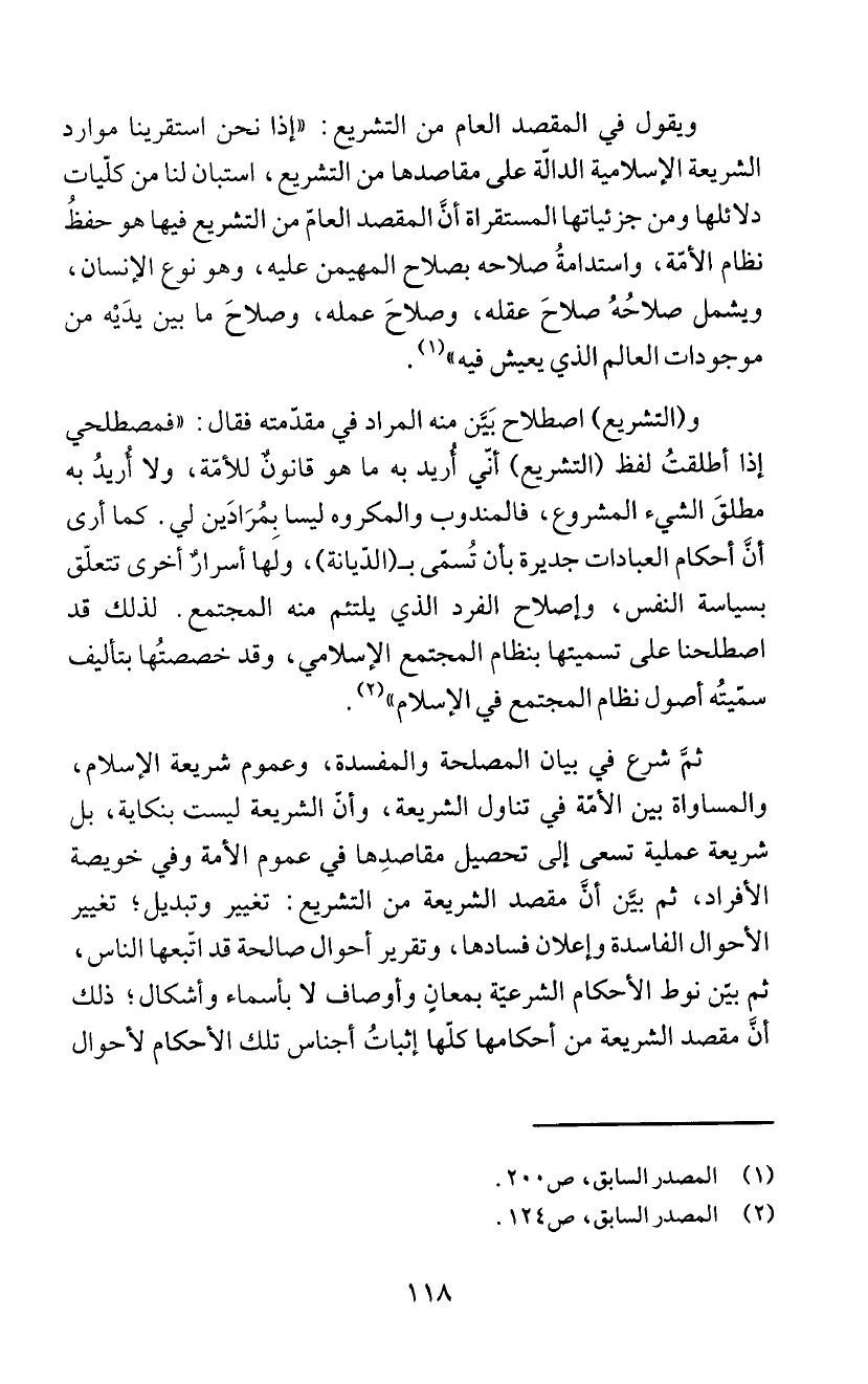 ويقول في المقصد العام من التشريع: "إذا نحن استقرينا موارد