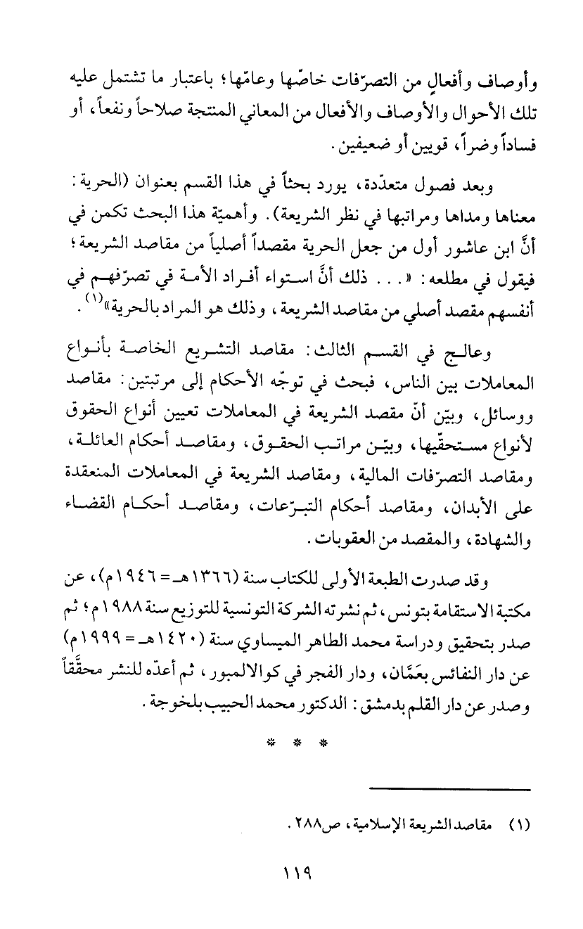 (1) مقاصد الثريعة الإسلامية، ص 288.