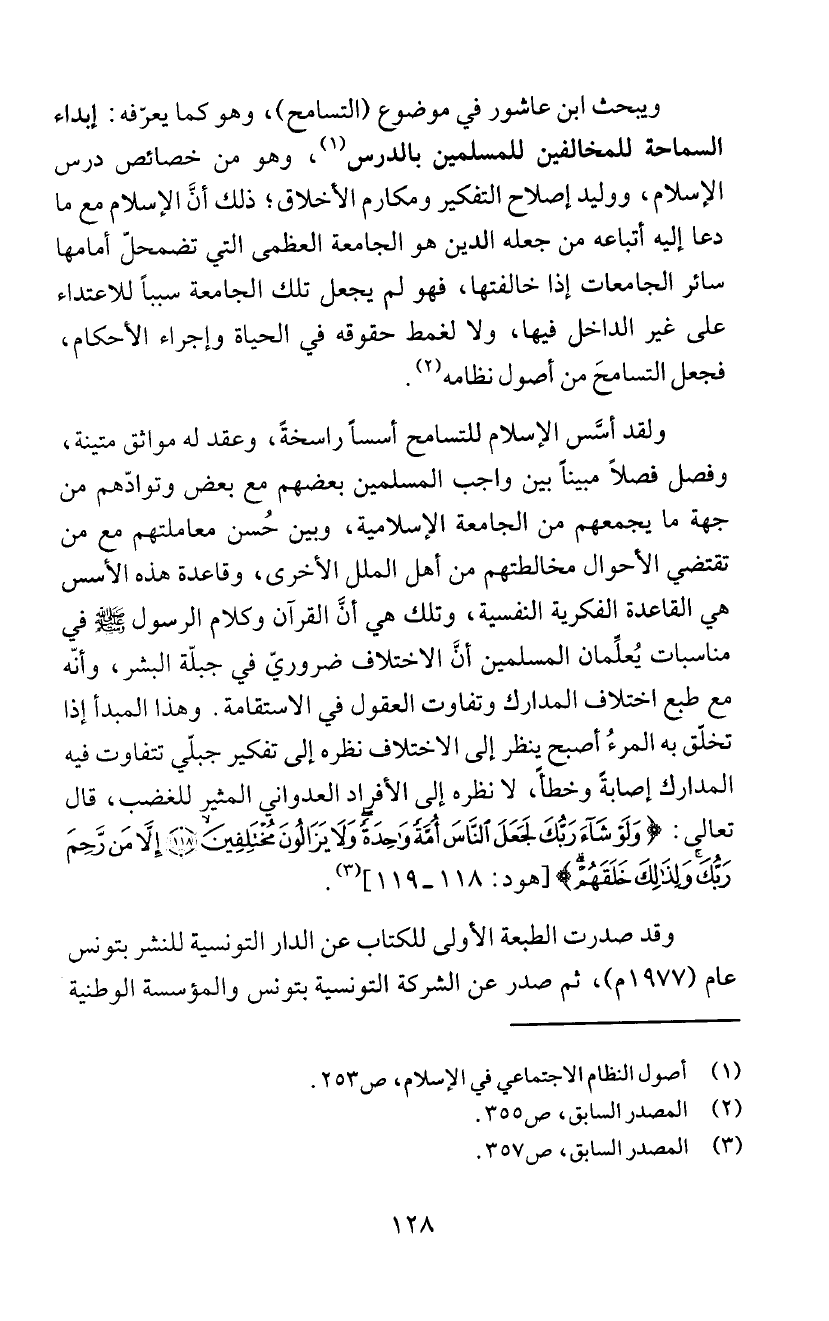 ويبحث ابن عاشور في موضوع (التسامج)، وهو كما يعزفه: إبداء