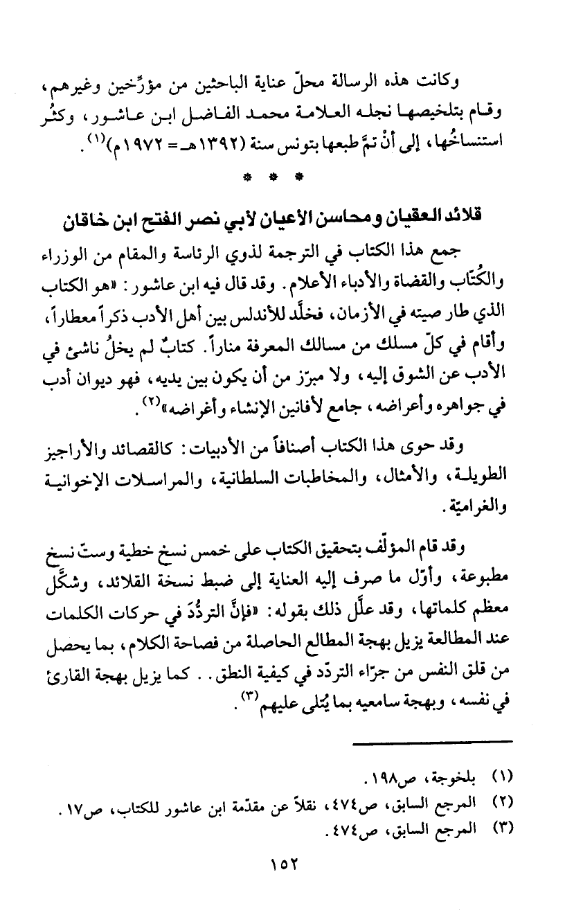 والكُتاب والقضاة وآلأدباء الأعلام. وقد قال فيه ابن عاشور: "هو الكتاب