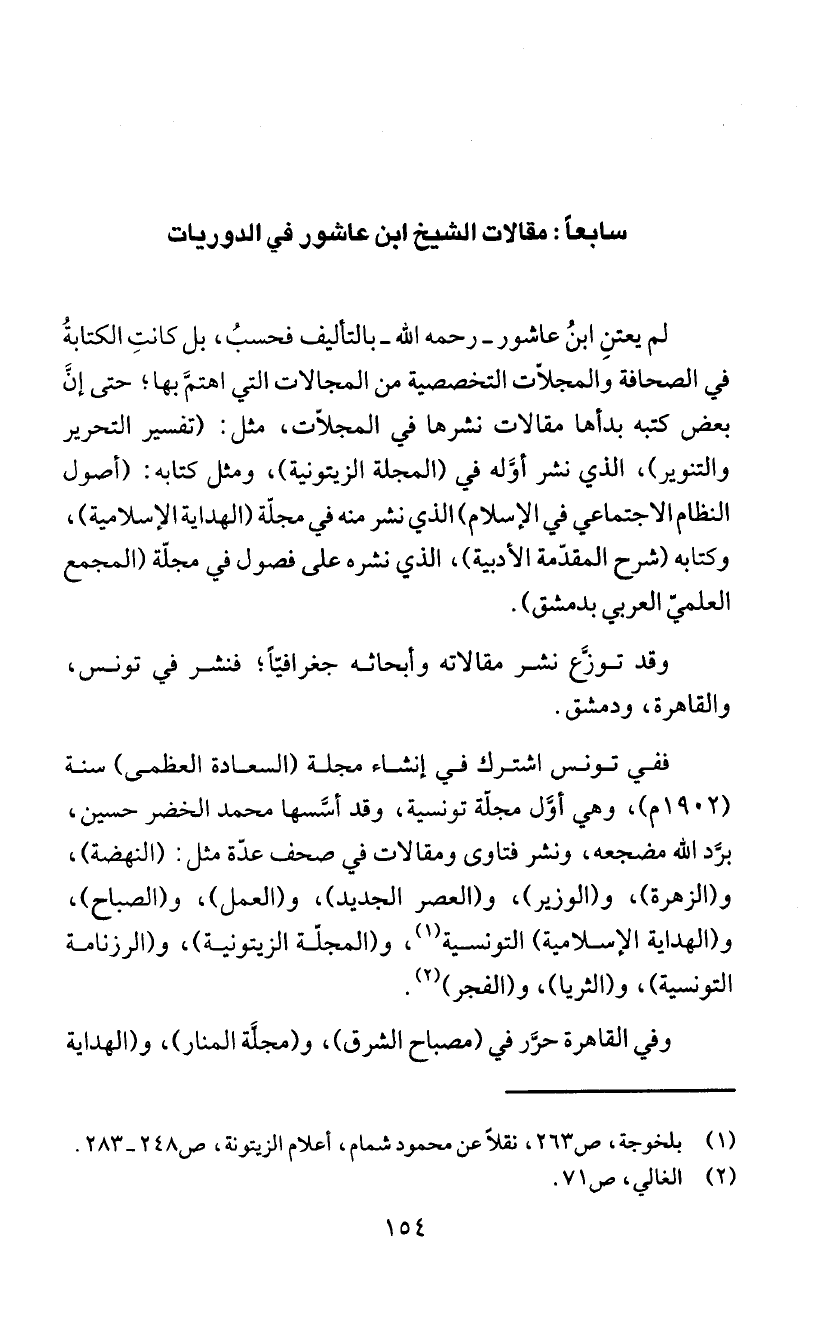 سابعاَ: مقالات الشيخ ابن عاشور في الدوريات