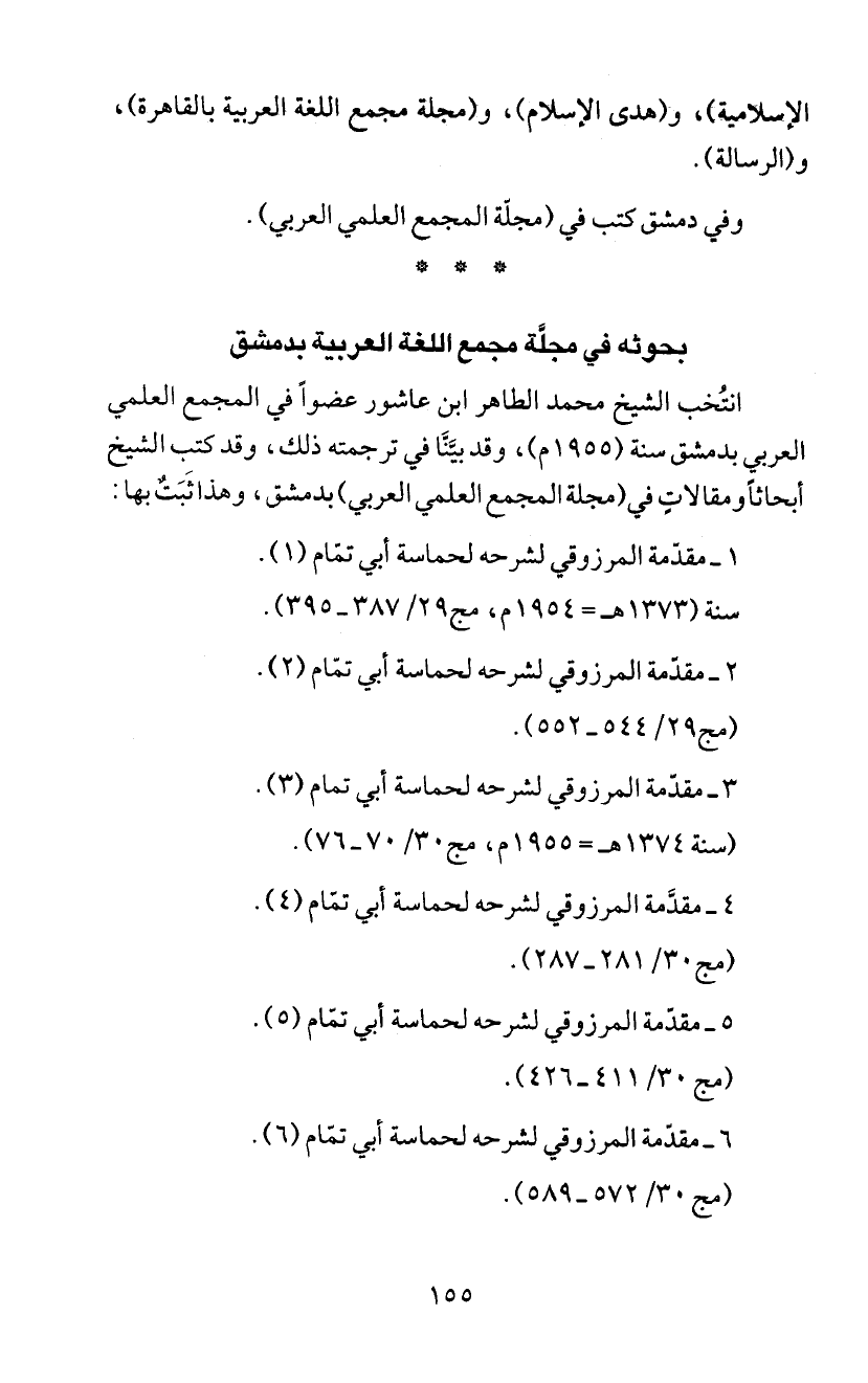 ابحاثاً ومفا لاتٍ في (مجلة ا لمجمع العلمي ا لعربي) بدمشق، وهذا ثَبَتٌ بها: