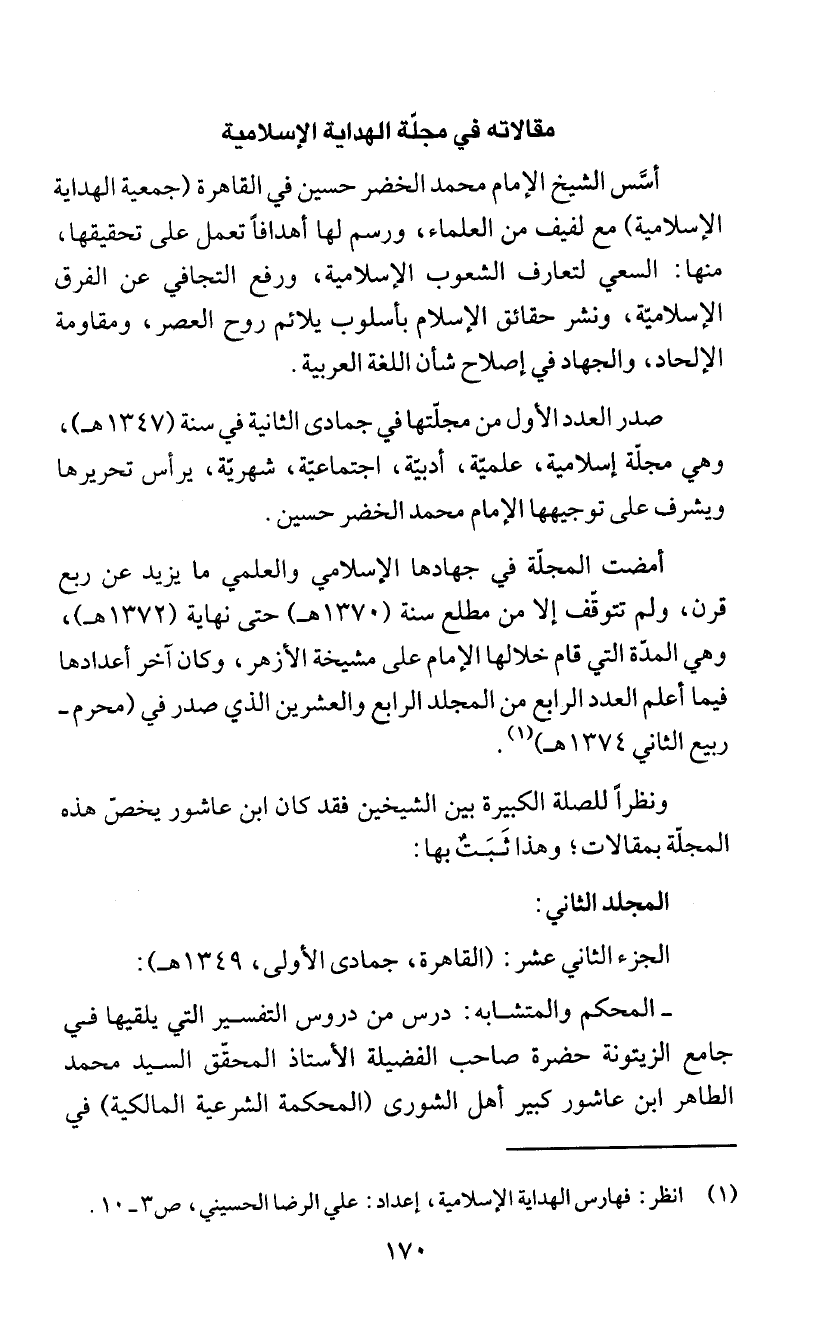 ويشرف على توجيهها الإمام محمد الخضر حسين.