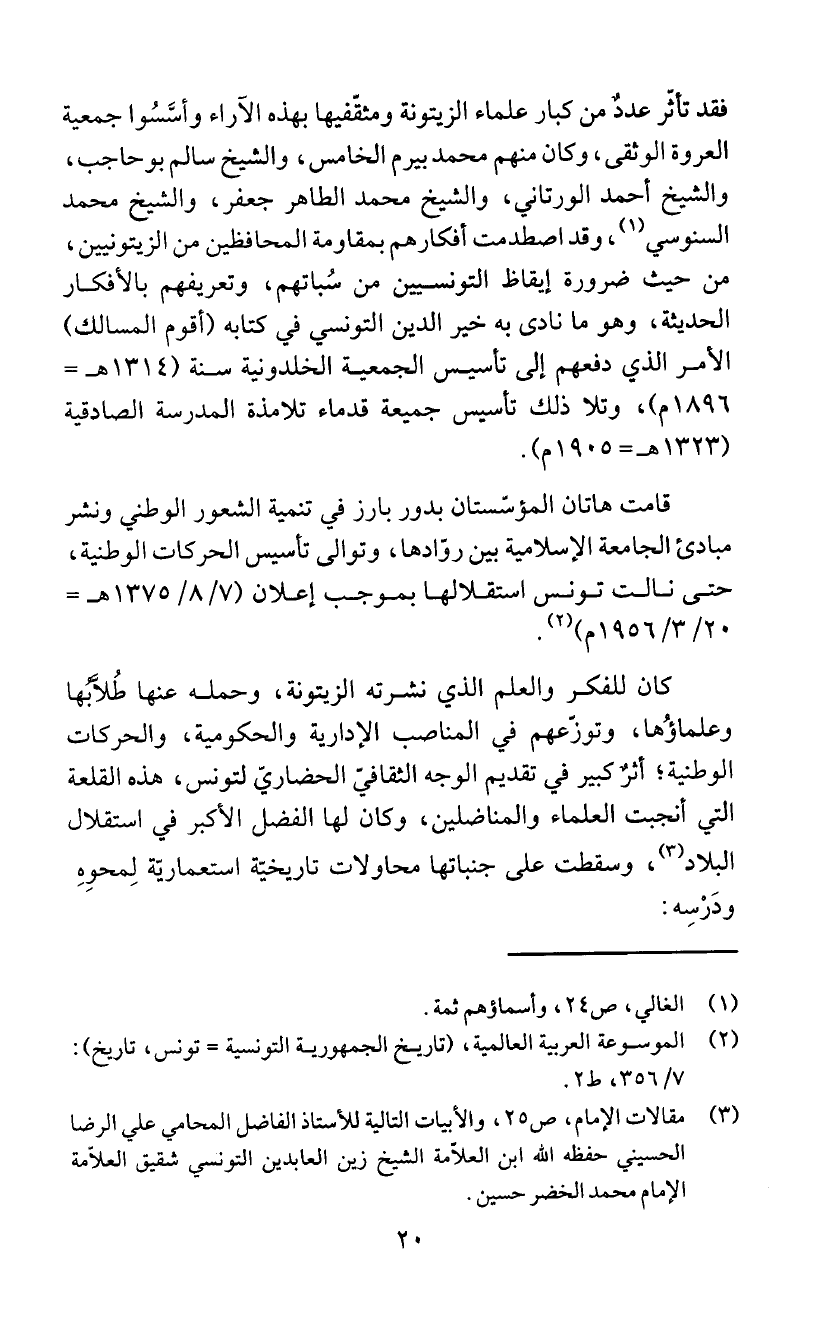 السنوسي (1)، وقد اصطدمت افكارهم بمقاومة المحافظين من الزيتونيين،