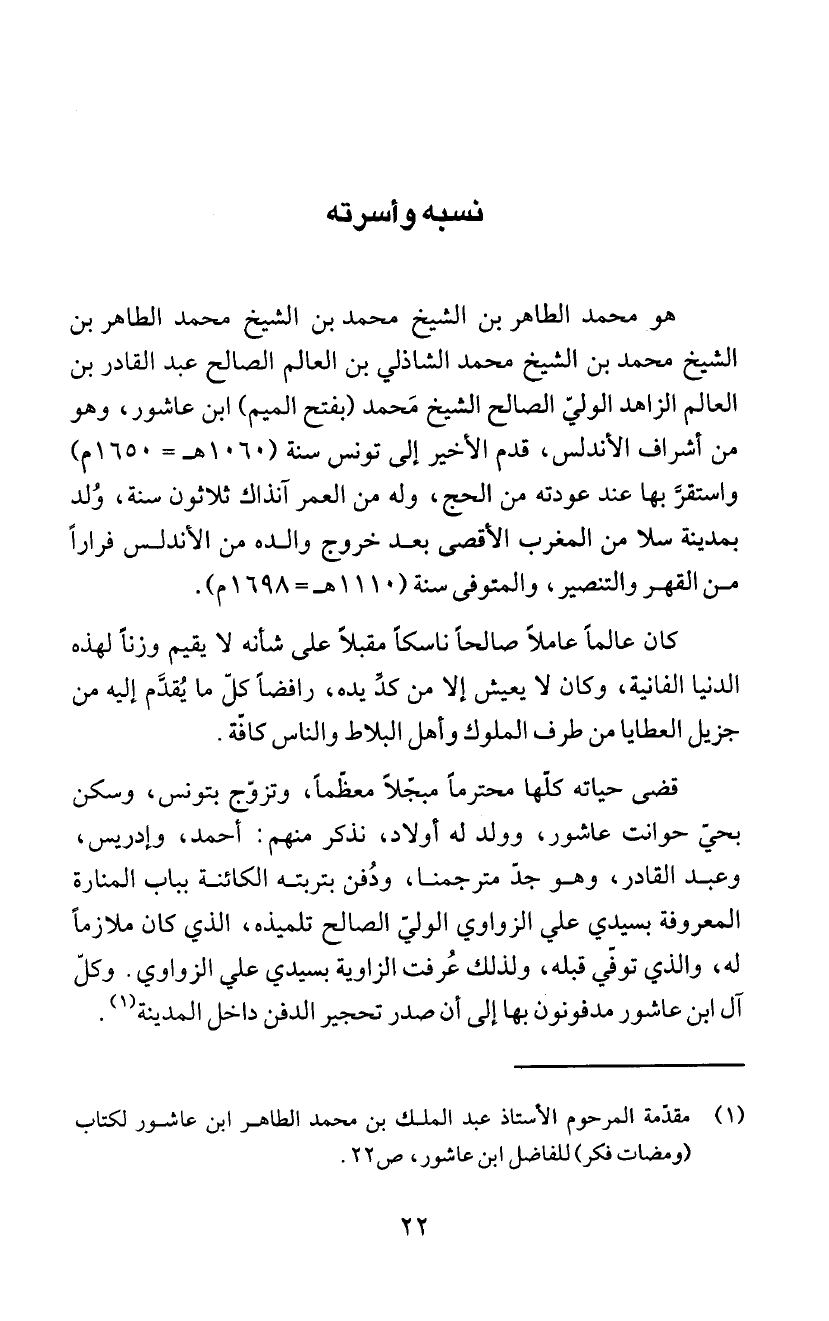 مقذمة المرحوم الأستاذ عبد الملك بن محمد الطاهر ابن عاشور لكتاب