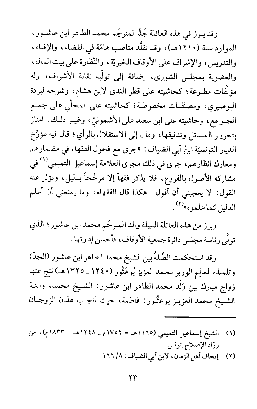 وبرز من هذه العائلة النبيلة والد المترجَم محمد ابن عاشور؟ الذي