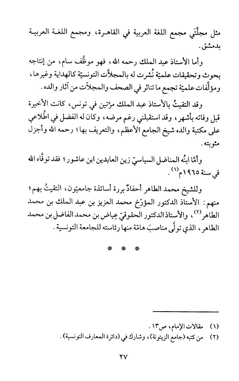 الطاهر، الذي توثَى مناصبَ هاقة منها رئاسته للجامعة التونسية.