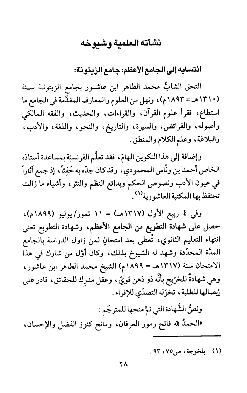 الامتحان سنة (317 اهـ= 1899 م (الشيخ محمد الطاهر ابن عاشور،