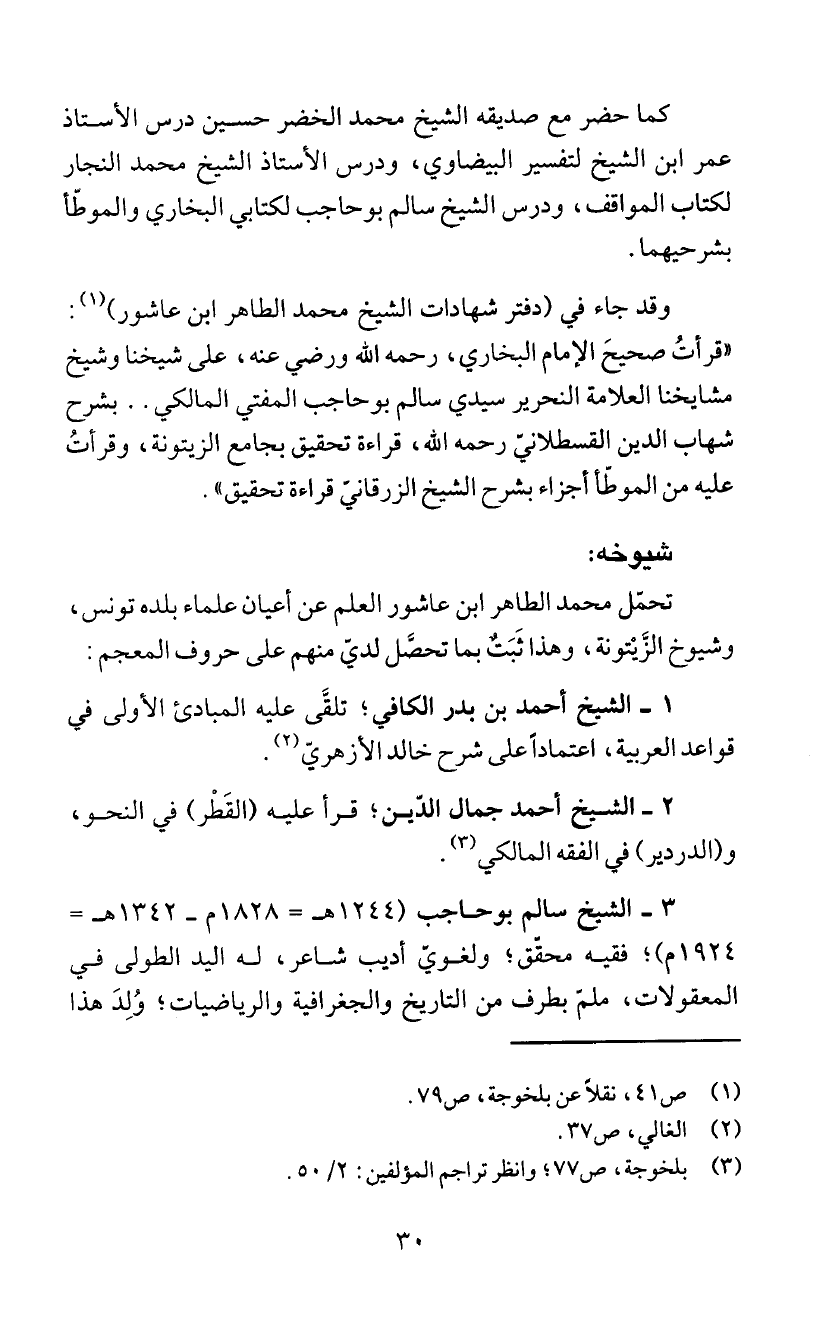 وقد جاء في (دفتر شهادات الشيخ محمد الطاهر ابن عاشور) (1):