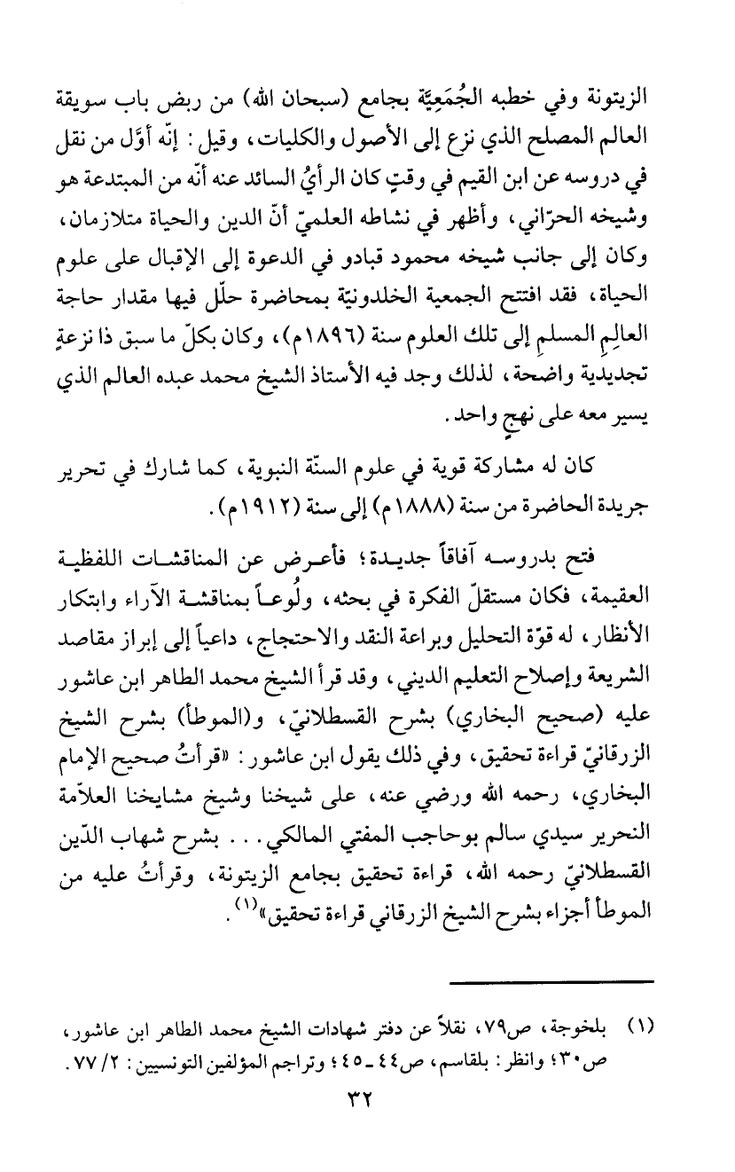 بلخوجة، ص 79، نقلاً عن دفتر شهادات الشيخ محمد الطاهر ابن عاشور،